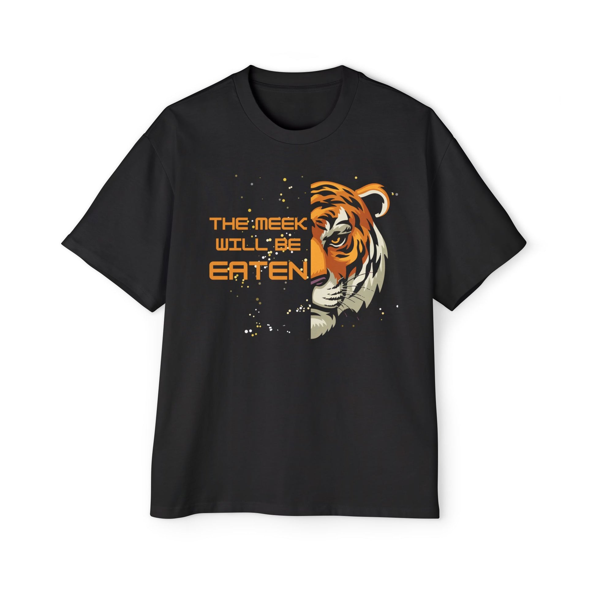 This tee isn’t here to play nice—it’s here to pounce. With a fierce tiger face and the unapologetic phrase “The Meek Will Be Eaten,” it’s your go-to when you're feeling bold, bossy, or just a little bit over everyone’s nonsense.